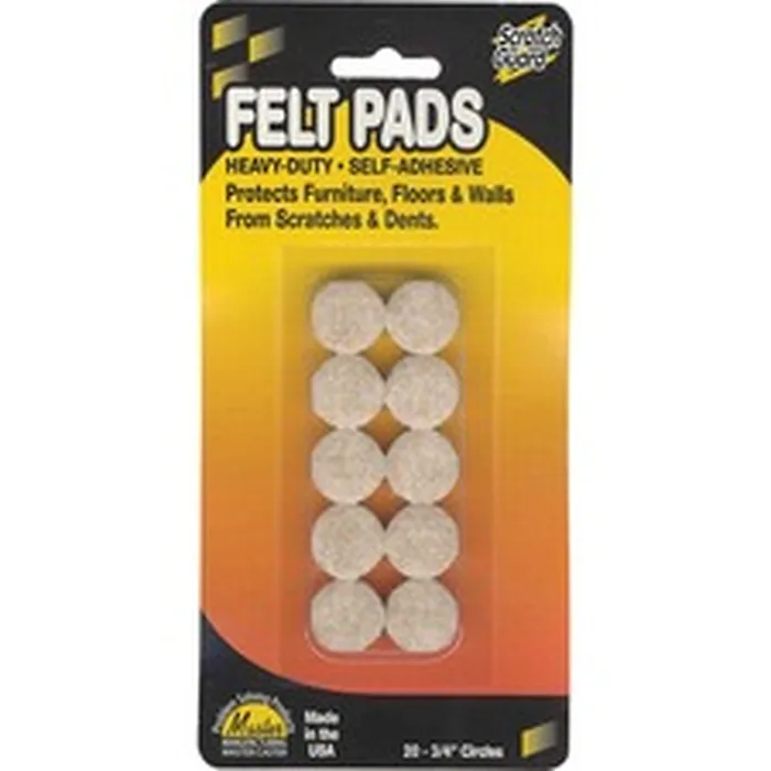 Master Mfg. Co Scratch Guard® Felt Circles, Self-adhesive - Polyester Felt, 3/16 Thick, 3/4 Dia., Beige, 20/pk