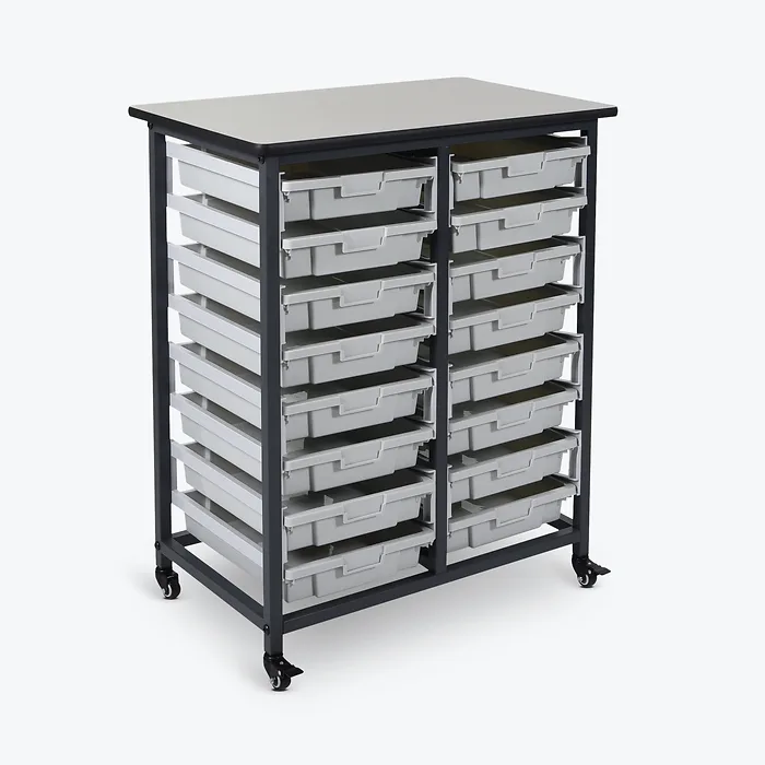 Organize and stack supplies in sixteen 3"-deep tubs