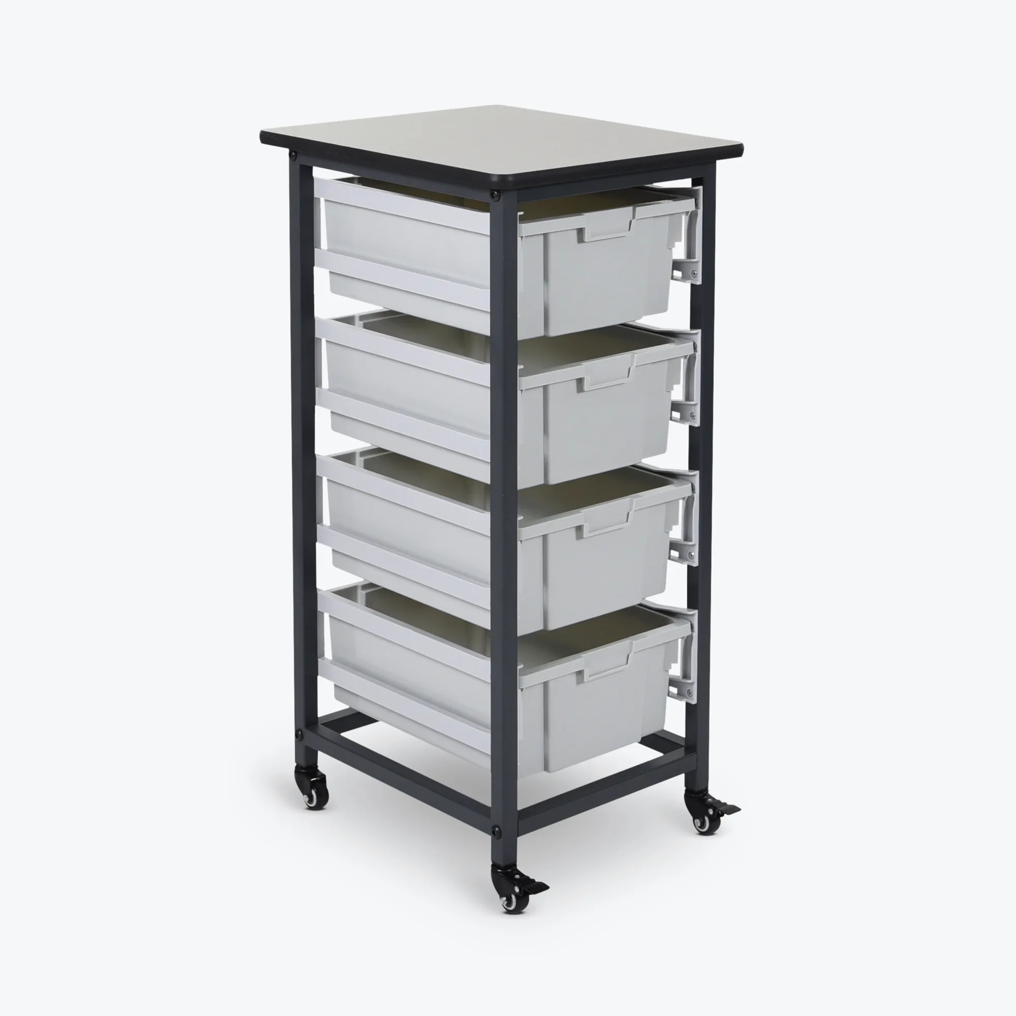 Organizes supplies in eight 3"-deep and four 6"-deep bins