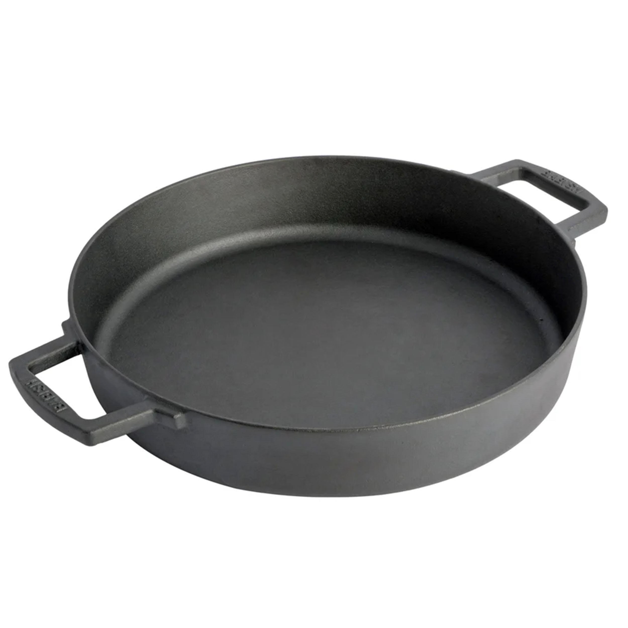 The Megachef 12 inch round preseasoned cast iron frying pan is perfect for preparing your every day family meals. The 12in diameter and 2.25in depth makes this cast iron pan versatile and great for multiple applications- from sauteing vegetables to pan-roasting chicken to searing steaks and more. Cast iron construction is ideal for even heating, making your dishes consistent (oven safe up to 500F). Features include a hanging hole on handle that offers storage options, and pour spouts at the sides that are convenient for draining meat juices and pouring sauces. Preseasoned coating prevents rust while sitting in storage and means you can get to cooking right away!