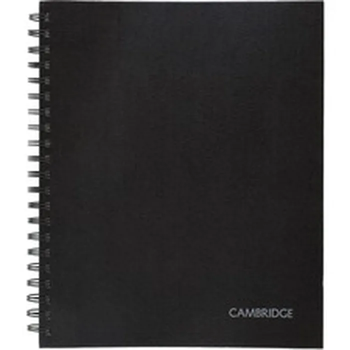 Hardbound business notebook contains 96 sheets of premium 20 lb. bond paper that offers a no bleed-through surface. Each sheet is college-ruled with 9/32" line spacings and a 1-5/8" left margin. Margin is 1" from the perforation. Perforations allow easy, clean removal. Hardbound stamped linen cover provides a sturdy, portable writing surface for any busy professional. Wirebound notebook is undated for easy customization.