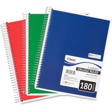 One-subject, wire-bound notebook features durable, water-resistant covers to keep your notes protected all year long. College-ruled, high-quality paper resists ink bleed to help keep your writing legible. Neat sheet pages are perforated for clean, consistent removal. Spiral lock wire prevents the coil from snagging onto your clothing or backpack. Reinforced storage pocket help prevent tears and offers convenient storage for your loose papers.