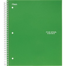 Wirebound Notebook meets all your note-taking and homework needs. Scan, study and organize your notes with the Five Star App. Create instant flashcards and sync your notes to Google Drive to access them from any device. Five-subject notebook has 100 double-sided, college-ruled sheets that fight ink bleed and are perforated for easy tear-out. Sheets measure 8-1/2" x 11" when torn out. Tough pockets prevent tears and hold loose sheets and handouts. Covers are water-resistant to protect your notes. Spiral lock wire prevents snags on clothes and backpacks. Notebook is made with SFI certified paper. Remove reinforcement tape to recycle.