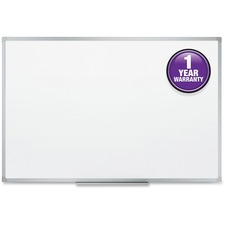 Basic dry-erase board provides a smooth and durable whiteboard writing surface that is great for quick note-taking. Hang in cubicle or other low-traffic environment and clean after each use for best performance. Design features a melamine surface and sleek, silver aluminum frame. Marker tray is included along with mounting hardware that allows board to hang in either a vertical or horizontal orientation.