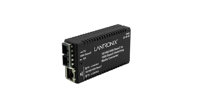 The Lantronix M/GE-PSW-SX-01 (LC) is a compact, stand-alone mini media converter designed to seamlessly bridge Gigabit Ethernet (10/100/1000Base-T) copper networks with 1000Base-SX multi-mode fiber optic cabling. Its small footprint makes it ideal for deployments where space is limited. Operating at Layer 2, it not only converts media types but also provides rate conversion, allowing older 10/100 Mbps copper devices to connect to 1000Base-SX fiber networks. Key features include Auto-Negotiation, Auto-MDI/MDIX, Active Link Pass Through, Automatic Link Restoration, and support for Jumbo Frames up to 10,240 bytes. This converter is a cost-effective solution for extending network distances and integrating diverse networking equipment.