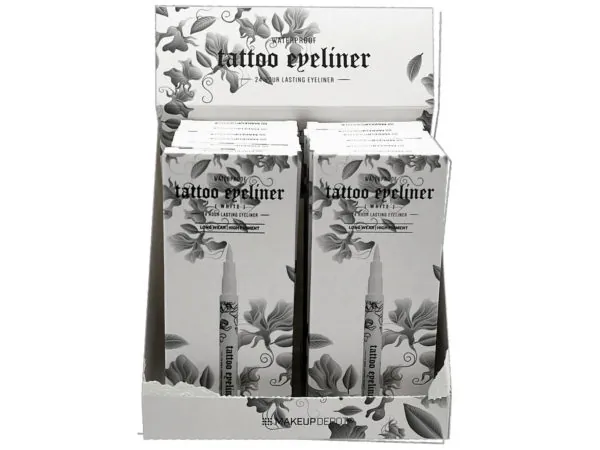 Use the Waterproof Shimmer Eyeliner to create bold, daring eye make-up looks! Perfect for day and night styles, the eyeliner shimmer has a pointed tip making it great for drawing sharp eyeliner wings. There are 6 colors per countertop display - coffee, bronzer, gold, white, dark bronzer, and wine. Eyeliner is waterproof so enjoying the elements won't ruin your look. There are 36 eyeliners per display, 6 of each color.