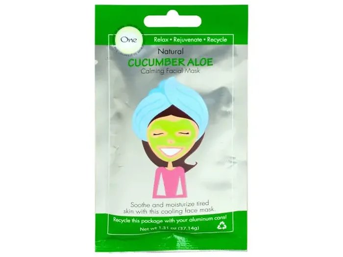 Indulge your skin with the ONE Bath & Body Natural Cucumber Aloe Calming Facial Mask. This soothing and moisturizing mask is designed to rejuvenate tired skin, helping you unwind during your self-care routine. Simply cleanse your face, apply the mask sheet, and enjoy 15 to 20 minutes of relaxation while the mask works its magic. The formula is free from parabens, plastics, and is cruelty-free, making it a great choice for conscious consumers. This product comes beautifully packaged in a countertop display, which includes 6 individually wrapped Cucumber Aloe Calming Facial Masks in recyclable aluminum packs.