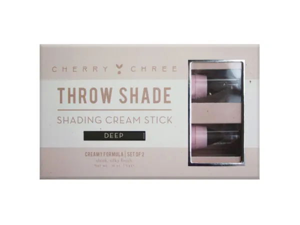 The "Throw Shade" Tan Shading Cream Stick Duo is designed to enhance your facial contours. This versatile product can be applied along the jawline, hairline, temples, sides of the nose, and on the hollows of your cheeks to beautifully accentuate your natural features.