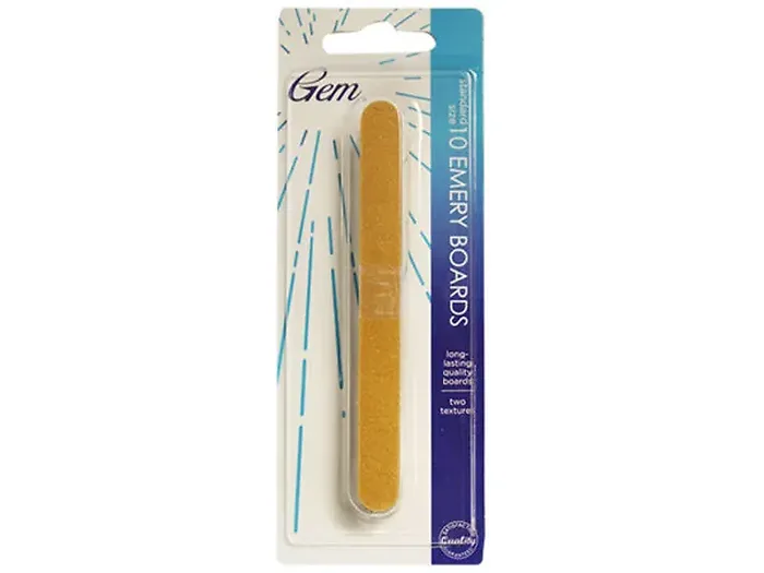 Achieve perfectly shaped nails with the Gem 10 Pack Emery Boards. This essential nail care tool features a fine-grit surface that smooths and shapes nails with ease. Whether you're prepping for a manicure or just maintaining your nails at home, these emery boards are designed for optimal performance.
