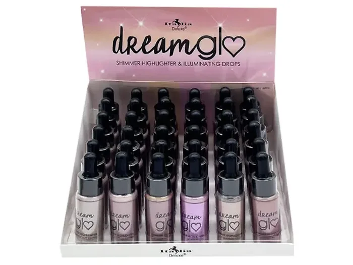 The DreamGlo shimmer drops are available in four gorgeous highlighting pearl shades: pink, rose gold, gold, and platinum. This countertop display contains 36 bottles, making it perfect for retail environments.