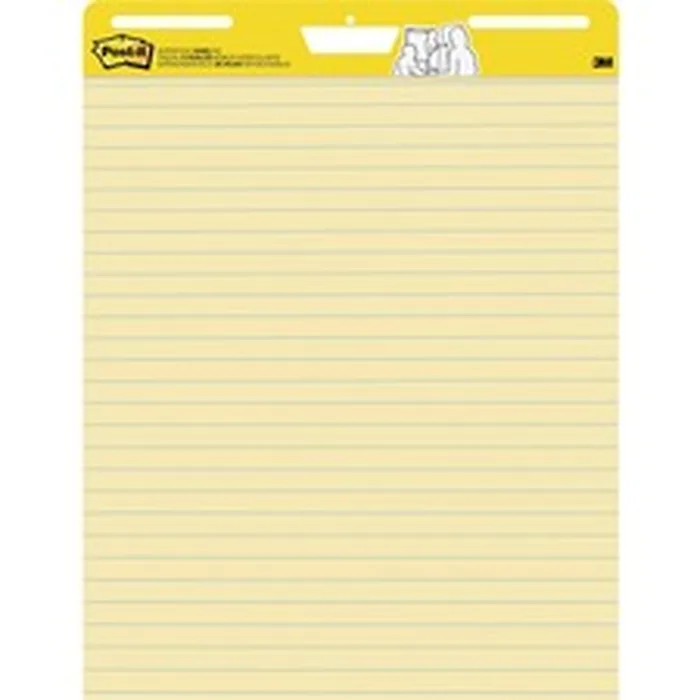 With sheets that can stick almost anywhere, Post-it Easel Pads foster the imaginative thinking that lays the foundation for future growth. So when you want to successfully plan, collaborate and capture and build on ideas, they're ready to help you succeed. These Post-it Easel Pad sheets feature premium, canary yellow paper that has faint blue lines and resists marker bleedthrough. They stick to most surfaces and can be repositioned again and again, without surface damage. The yellow paper gets noticed, and the lines are great for helping you keep writing neat and straight. Sturdy backcard features a handle for easy portability and universal slots to fit most easel stands.