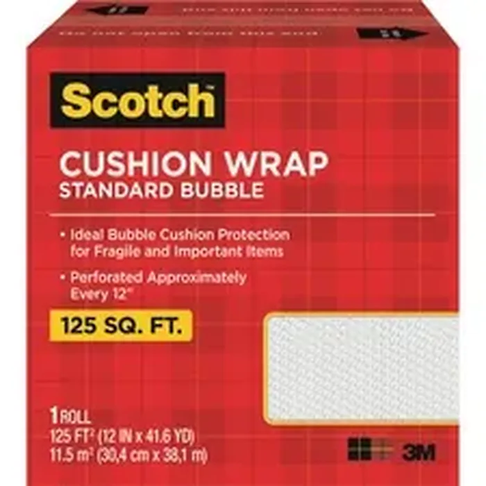 Scotch Cushion Wrap offers excellent bubble cushion protection for fragile and delicate items during mailing, shipping and storage. Recyclable polyethylene/nylon material is lightweight, neat, clean and non-scratching. Roll of 5/16" cushioned wrap is perforated every 12" for easy tearing.