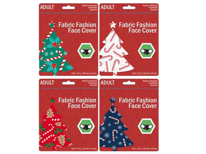 Made from washable cloth, these masks offer comfort and style during this merry season. With one mask in each pack, you'll receive four assorted designs to match your holiday outfits!