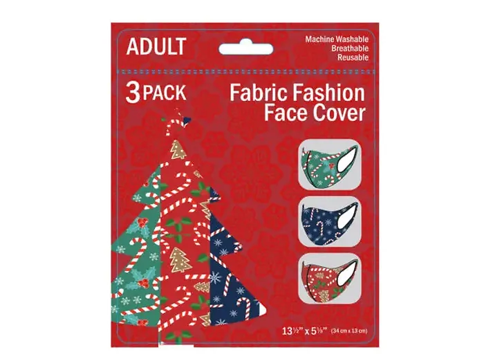 Celebrate the holiday season with our Festive Christmas Masks! These adorable, washable adult-sized masks add a fun touch to your festivities while keeping you safe. Each pack includes three unique designs featuring cheerful Christmas candy cane and gingerbread themes. Choose from blue, green, and red colors to match your holiday spirit!