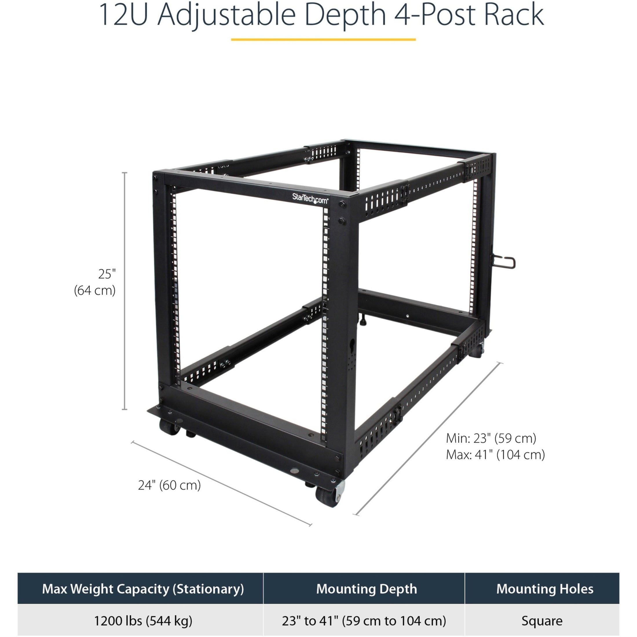 12U OPEN FRAME SERVER RACK W/ADJUSTABLE MOUNTING DEPTH OF 22IN-40IN & 25IN TALL