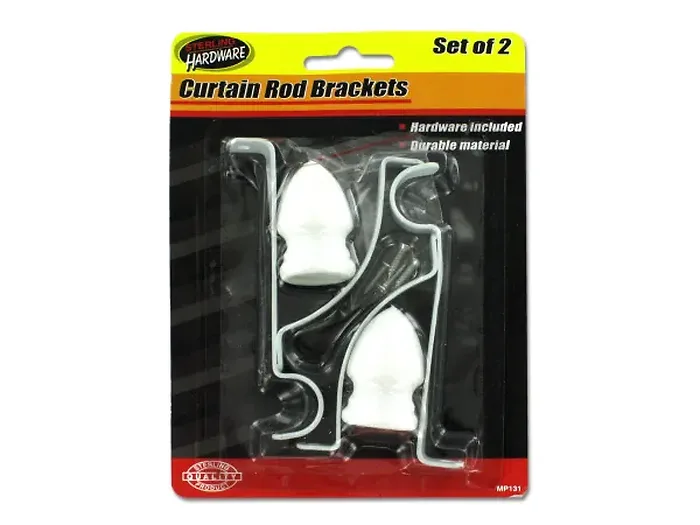 Enhance your window decor with these stylish adjustable curtain rod brackets. Made from durable metal with elegant plastic decorative ends, these brackets are designed to hold curtain rods securely. The package includes four slotted screws for quick and easy installation. Each bracket measures approximately 4 inches in length, while the curtain rod ends measure about 1 1/2 inches long. Compatible with curtain rods up to 3/4 inch in diameter, these brackets come in a sleek white finish and are packaged conveniently in a blister pack with a hanging hole.