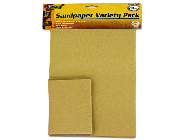 Ideal for sanding metal, wood, painted surfaces and plastic, this 6-piece Wet Sandpaper Set contains 6 pieces of sandpaper: 2 coarse sheets, 2 medium sheets and 2 fine sheets. Great for home and industrial use. Sheets measure 8" x 10". Comes packaged in a hanging panel.