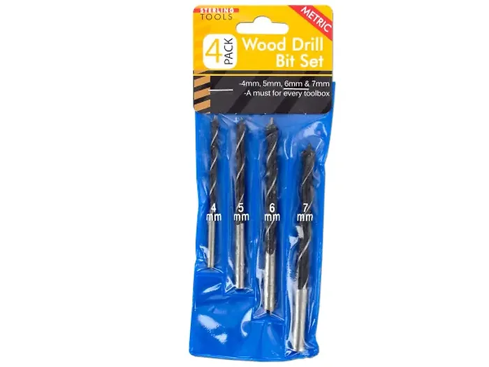 Introducing our High-Quality Wood Drill Bit Set, an essential addition to any toolbox. This versatile set includes four drill bits in the most common sizes: 4mm, 5mm, 6mm, and 7mm. Perfect for woodworking projects, these bits are designed to deliver precision drilling. Packaged conveniently in a sleeved vinyl bag with a header card for easy storage and transport, each bit measures between 3 inches to 4.5 inches in length.