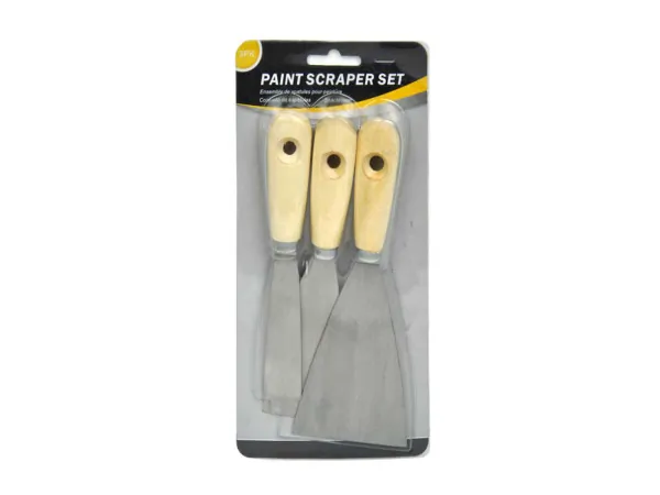 Quickly and easily remove paint from windows and clean glass with this 4-piece Mini Scrapers Set featuring a contoured design that is easy to hold. Great for getting into tight spots. Easily change the razor blade with push button position lock system. Each razor measures approximately 1.75" x 2.125". Comes packaged in a blister pack.