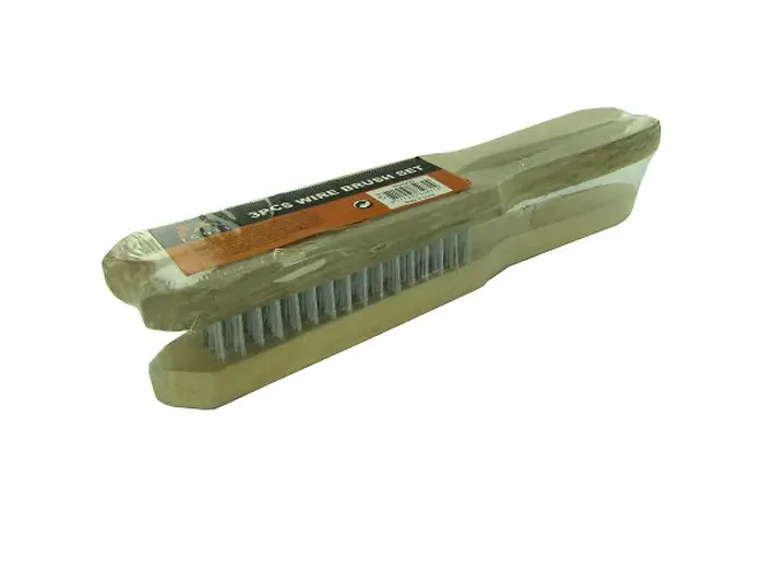 The Multi-Purpose Wire Brush Set is designed to effectively remove rust, dirt, grime, and peeling paint from a variety of surfaces. Each brush features durable wood handles and sturdy wire bristles, ensuring a comfortable grip during use.