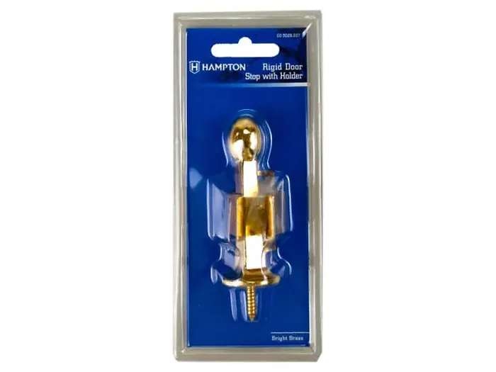 This Bright Brass Rigid Door Stop with Holder by Hampton is an essential accessory for any home. Designed to effectively prevent damage caused by swinging doors, this door stop is both functional and stylish.