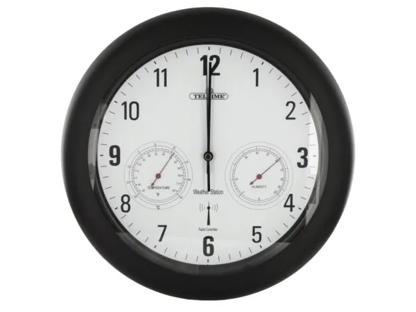 Stylish Black Wall Clock with Weather Monitoring