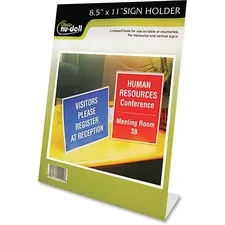 Vertical sign holder delightfully displays your sign anywhere on a wall. Pre-drilled holes in the frame allow you to easily attach the frame in an appropriate location. Clear plastic holder is perfect for displaying signs, pictures, notices and more.