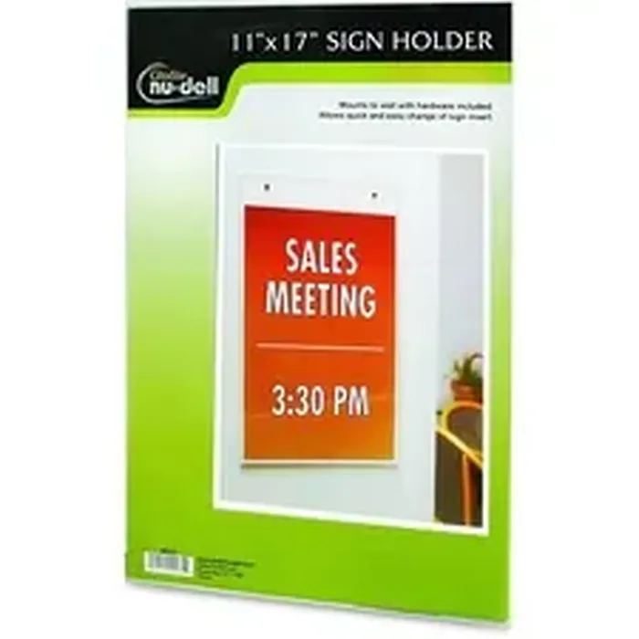 NuDell Vertical Wall Sign Holder - 1 Each - 11 Width x 17 Height - Rectangular Shape - Pre-drilled - Acrylic - Clear