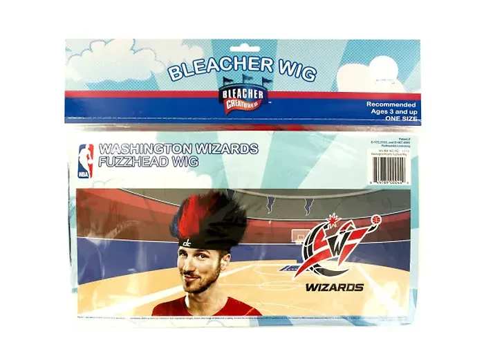 Prove that you are truly the #1 sports fanatic for your team with this fun NBA licensed Washington Wizards Fuzzy Head Wig featuring team-colored hair and a flexible band with embroidered team graphics. No one will question who your favorite team is when you wear this zany hat to the next game. For ages 3 and up. One size. Comes packaged in a poly bag with a header card.