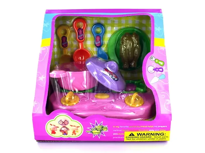 This vibrant 7-piece kitchen play set is designed for imaginative chefs ready to whip up pretend meals! The set includes a two-burner stove, a skillet with a lid, three essential cooking utensils, a cutting board, and even a piece of food for realistic play.
