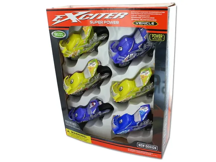 Ignite the thrill of racing with our exciting motorcycle racing playset! Perfect for young speed enthusiasts, this set promises hours of imaginative fun as kids zoom their vibrant motorcycles around. With six unique racers in lively colors of red, yellow, and blue, it's also a fantastic option for party favors, making every celebration a hit!
