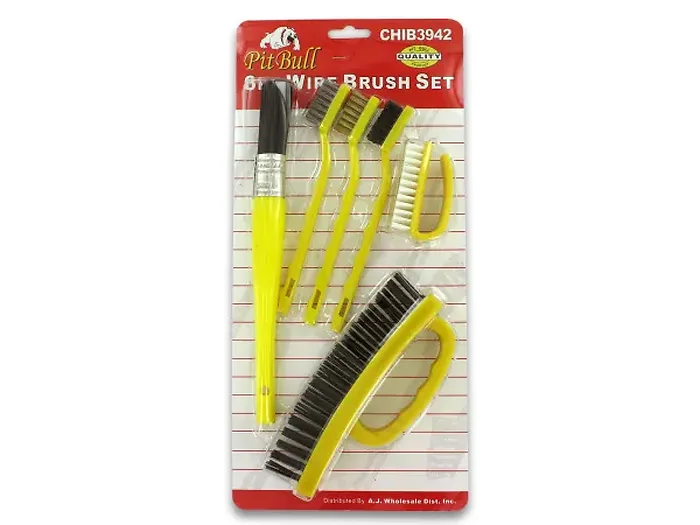 This comprehensive six-piece wire brush set is designed for all heavy-duty cleaning tasks, making it an essential tool for car enthusiasts. The brushes effectively clean dirt and grime in hard-to-reach areas of your vehicle's interior, on exterior surfaces, and under the hood.