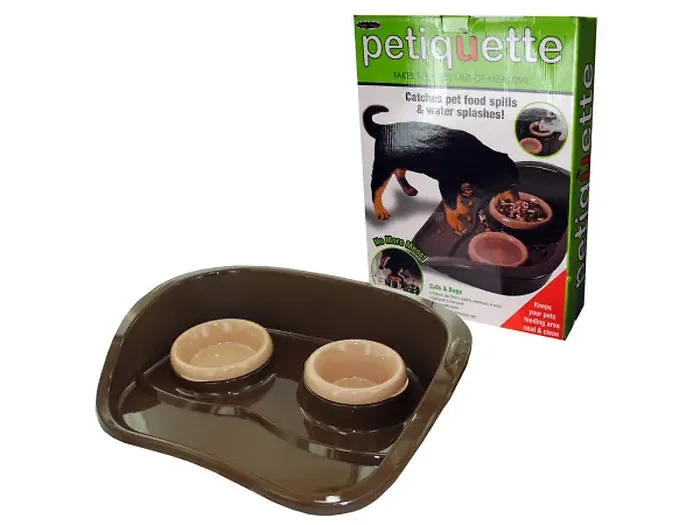 Keep your pet's feeding area tidy with this Pet Feeding Tray. Designed to protect your floors, carpets, and walls from messes, it's both spill-proof and kick-proof. This set includes two removable bowls that are dishwasher safe for easy cleaning. The Pet Feeding Tray comes in a stylish box, making it a perfect gift for pet owners.