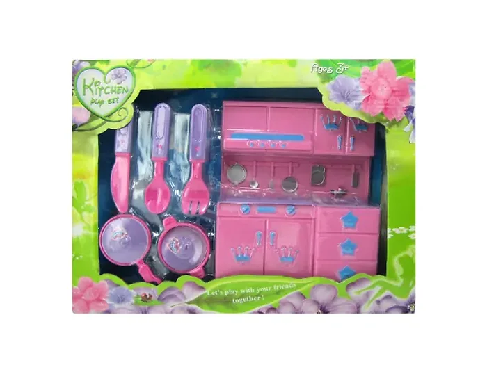 Cook up some fun with this interactive kitchen playset designed for young chefs! This delightful eight-piece set features a realistic kitchen station complete with a sink, stove, drawers, and cabinets. Included in the set are a pot and a pan with lids, along with essential utensils like a fork, spoon, and knife. Perfect for children who love to pretend and explore their culinary creativity, this playset ensures hours of safe and mess-free play. The dimensions of the packaging are approximately 13" x 9.5" x 2.5", making it easy to store or gift.