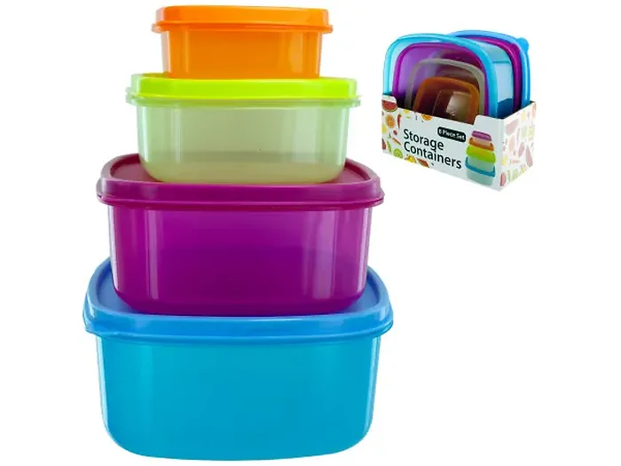 Maximize your organization with our Multi-Size Colorful Plastic Storage Container Set. Perfect for meal prep, leftovers, or transporting potluck dishes, these sturdy containers come in a variety of sizes and vibrant colors to make food storage convenient and fun. The set includes four uniquely sized containers at 47 oz., 33 oz., 16 oz., and 7 oz., each with matching lids to keep your food fresh. Whether you're organizing your kitchen, crafting supplies, or tools, these containers are designed for versatile use. Each set is neatly packaged with shrink wrap inside an open box for easy display and storage.