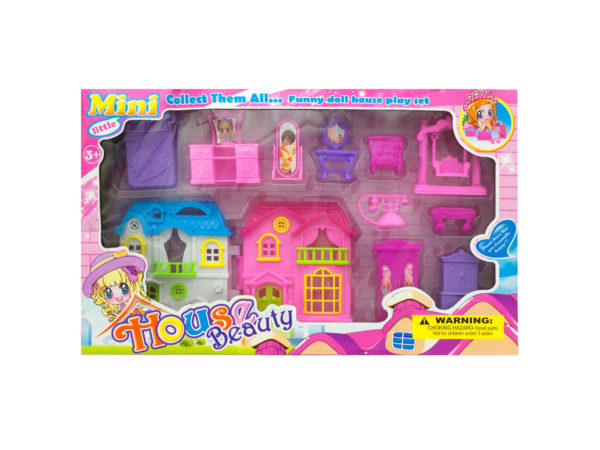This set encourages imaginative play and easy transport - just close the house and take it along wherever you go! The play set includes a two-story folding house, fifteen pieces of colorful furniture and appliances, and two adorable figures to live inside. Perfectly packaged in a window box, this house measures approximately 14" x 7.5" x 3" and comes in attractive pink and blue options.