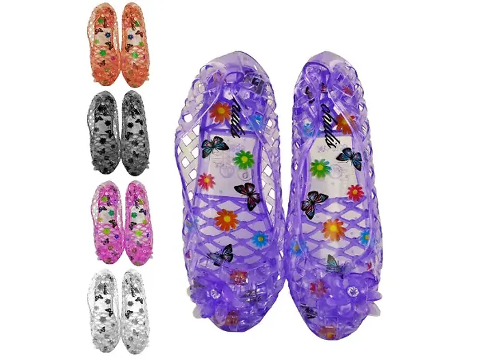 Step out in style with our Stylish Ladies Cut-Out Jelly Footwear! These fun and trendy shoes are perfect for adding a pop of color and a retro vibe to your wardrobe. Featuring a unique all-over cut-out design and a charming floral embellishment with sequins, they are sure to make heads turn.