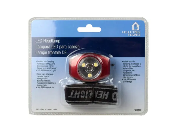 A great addition to your emergency kit, this LED Headlamp is the perfect hands-free lighting device! Simply place the adjustable strap on your head and you're ready to handle any low-light situation. Lamp features 4 mode settings: 1 LED, 7 LED, 19 LED and flashing mode. 3 "AAA" batteries are included. Light lasts up to 45 hours per set of batteries. Comes packaged in a hanging clam shell. A great addition to your emergency kit, this LED Headlamp is the perfect hands-free lighting device! Simply place the adjustable strap on your head and you're ready to handle any low-light situation. Lamp features 4 mode settings: 1 LED, 7 LED, 19 LED and flashing mode. 3 "AAA" batteries are included. Light lasts up to 45 hours per set of batteries. Comes packaged in a hanging clam shell.