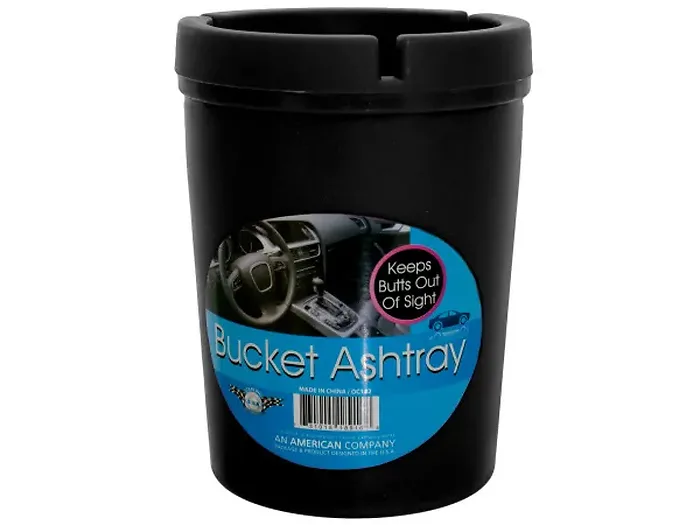 Keep your car and environment clean with our Portable Bucket Ashtray. Designed for convenience, this travel ashtray allows you to discreetly dispose of cigarette butts while on the go. Its compact size makes it perfect for use in cars, and the sleek black color adds a touch of style.