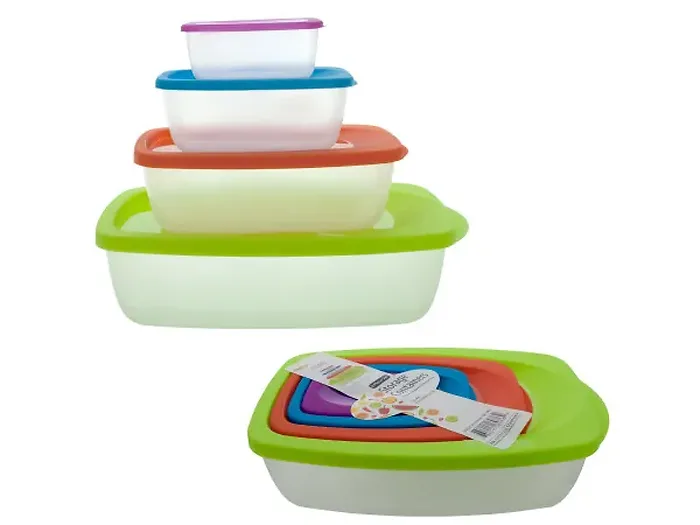 These colorful rectangle storage containers are ideal for keeping your meals fresh and organized. Perfect for leftovers, meal prep, or potlucks, this set includes 4 conveniently sized containers featuring vibrant lids in lime green, orange, blue, and purple.