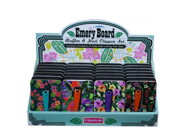 All tools are elegantly packed in a stylish snap open/close pouch that features beautiful designs of purple and orange flowers adorned with stunning gold glitter dots. Each countertop display contains 10 pouches, making it a great choice for retail or personal use. Pouches measure approximately 5 1/4" x 5".