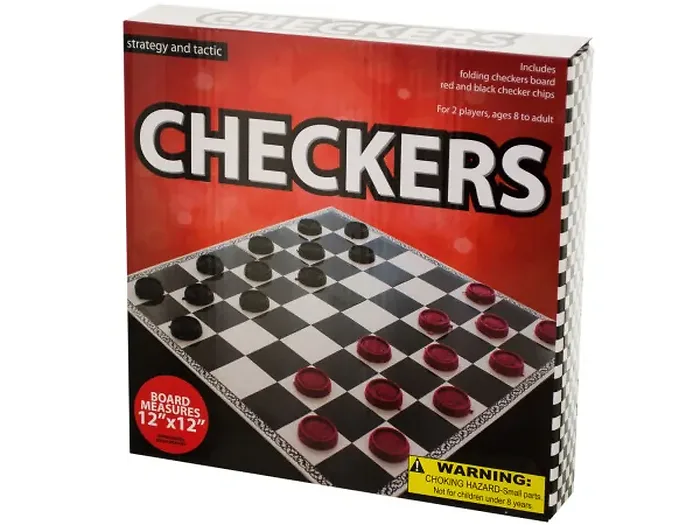 Experience the excitement of a timeless board game with our Classic Folding Checkers Game. This durable game set features a 12" x 12" foldable board, allowing for easy transport and storage. The set includes vibrant red and black plastic chips and comes with clear rules printed on the back of the box, making it perfect for new players and seasoned strategists alike.