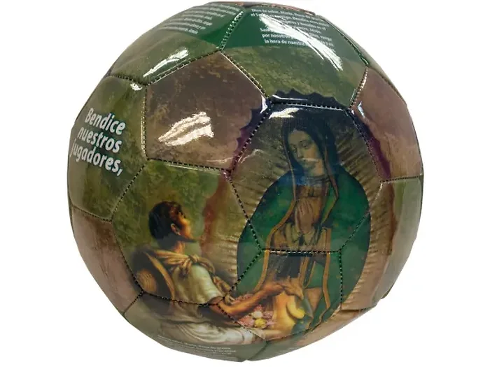 This unique ball showcases inspiring holy images alongside elegant Spanish writing, making it a beautiful addition to any sports collection.