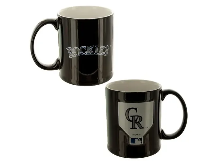 Show your allegiance to the Colorado Rockies with this stunning 11-ounce sculpted mug. Crafted from high-quality ceramic, it features a sleek black glazed exterior and a smooth white glazed interior. The mug prominently displays a raised team logo on one side and the team name on the other, making it a perfect addition to any Rockies fan's collection.
