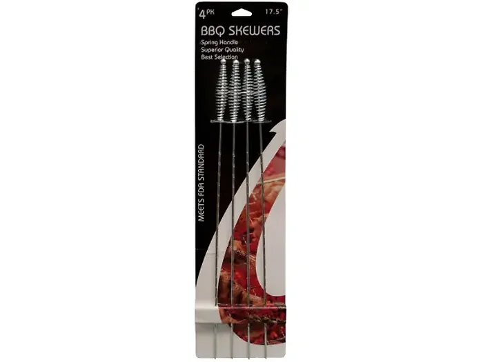 Elevate your grilling experience with our Premium Metal Barbecue Skewers Set. Perfect for creating delicious kabobs, roasting marshmallows, and cooking hot dogs, this 4-piece set is designed for versatility and ease of use. Each skewer measures approximately 17.5 inches long, featuring high-quality metal construction and spring handles for a secure, comfortable grip. The textured skewers ensure that your food stays in place while grilling, making meal preparation a breeze. Compliant with FDA standards for safe cooking, these skewers are a must-have for any outdoor cooking enthusiast.