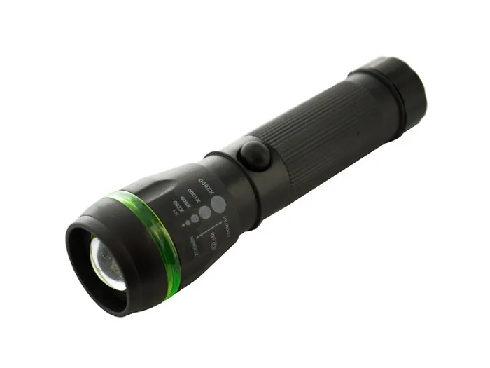 Energy-saving, ultra-bright and durable, these LED Adjustable Zoom Flashlights are great to have around the home, in the car, at the campsite and more. A great general use flashlight with the additional features of adjustable focus and zoom. Each flashlight measures approximately 5" x 1.5" x 1.125". Comes in assorted colors. Requires 3 'AAA' batteries (not included). Counter top display comes with 12 pieces.