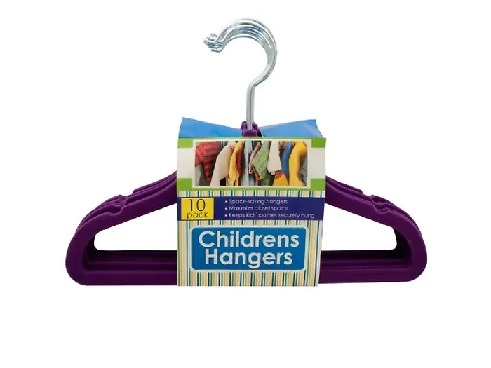 Maximize closet space and securely hang your children's clothes with this stylish Purple Velvet Flocked Hangers Set. With a strong metal hook and a soft velvet coating, these hangers prevent slipping and help maintain the shape of garments. Each hanger is designed to fit perfectly in smaller wardrobes, measuring approximately 11.75" x 8.25".