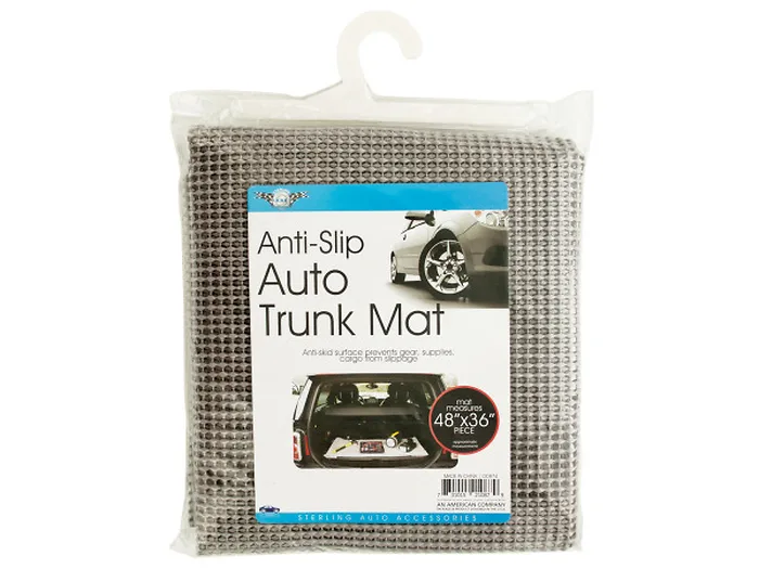 Prevent gear, supplies, and cargo from slipping around in your trunk with this convenient Anti-Slip Auto Trunk Mat featuring a grid pattern anti-skid surface to keep items in place. Measures approximately 47" x 36". Comes packaged in a hanging poly bag.