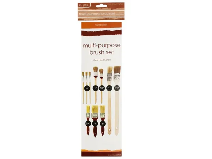 Introducing the versatile 10-Piece Painting Brush Set, perfect for a wide range of painting and home improvement tasks. This set includes a variety of brushes designed for both detail work and broader coverage, all crafted with natural bristles and synthetic tips for optimal performance.