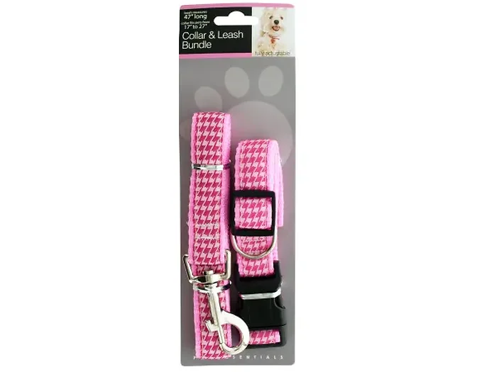 Elevate your dog's walking experience with our Stylish Pink Houndstooth Dog Collar and Leash Set. This chic 2-piece set includes a fully adjustable collar and a sturdy leash, both adorned with a timeless houndstooth pattern.